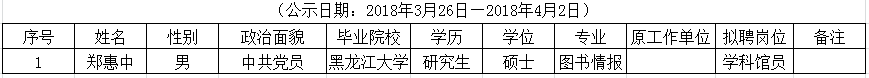 根据《事业单位公开招聘人员暂行规定》(人事部第6号令),经考核,拟聘用郑惠中等1人为防灾科技学院工作人员,现予公示。如对拟聘人员有异议,请于公示期内以电话、来访或书面形式向防灾科技学院人事处(010-61596031)或审计监察处(010-61596110)反映。以书面形式反映应署真实姓名。