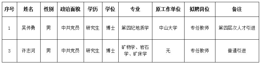 根据《事业单位公开招聘人员暂行规定》(人事部第6号令)、《防灾科技学院公开招聘人员暂行办法》(防科发人〔2018〕119 号),经考核,拟聘用吴传勇等2人为防灾科技学院事业编制工作人员,现予公示。如对拟聘人员有异议,请于公示期内以电话、来访或书面形式向防灾科技学院人事处(电话010-61596031邮箱rsc@cidp.edu.cn)或纪检室(电话010-61596110邮箱jiwei@cidp.edu.cn)反映。以书面形式反映应署真实姓名。公示期为2021年1月15日至2021年1月21日。