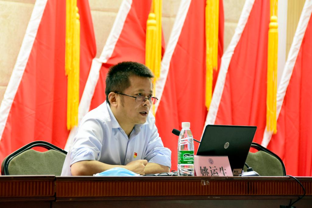 6月18日,党委书记姚运生主持召开第六次党委理论学习中心组集体学习(扩大)会议,并主讲“七一”党课。学校领导班子成员、党委委员、党的工作机构负责人、各党总支书记、各管理部门主要负责人参加会议。