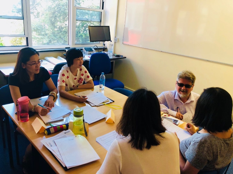 本次研修课程由英国雷丁大学4位专家联袂主讲:资深培训师Sebastian Watkins、Patrick Andrews、Rodney Jones和Colin Campbell副教授。课程聚焦EAP课程设置和教学方法,贯穿思辨能力和跨文化交际能力培养,融合二语习得前沿理论与研究成果。研修班授课方式丰富多样,包括集中讲授、小组或同伴讨论、课堂录像观摩、小组协作完成任务等,有趣而充实的学习体验为教学模式提供了新的灵感和思路,拓宽了教师们视野。