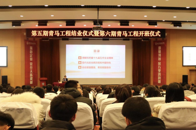 12月3日下午,学校第五期青年马克思主义者培养工程暨大学生骨干培训班“校级青马班”结业仪式暨第六期青年马克思主义者培养工程开班仪式在图书馆报告厅举行。学校党委副书记石峰出席仪式并做开班第一讲,党委学生工作部部长、学生工作处处长张伟,马克思主义学院院长李君,各二级学院团总支书记参加仪式,仪式由校团委书记樊帆主持。