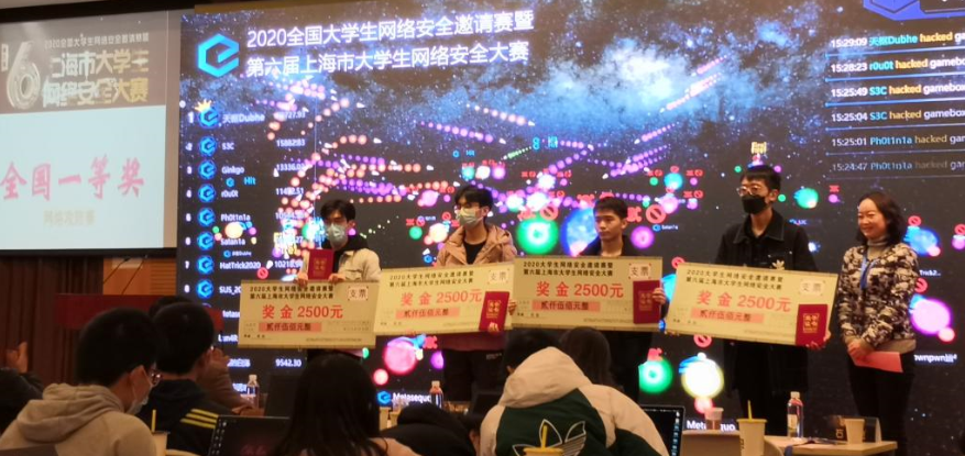 12月19日,2020年全国大学生网络安全大赛暨第六届上海市大学生网络安全大赛在东华大学举行,学校信息安全实验室Ginkgo战队(刘轩成、魏江水)经过线下六个小时的角逐,荣获全国一等奖。