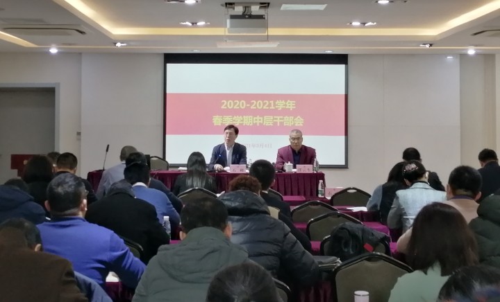 3月4日,学校召开新学期中层干部会,专题部署年度重点工作任务。学校领导班子成员出席会议,中层以上干部参加会议。会议由主持学校党委工作副书记石峰主持。