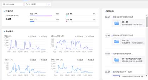 3月8日,我校正式启动2020-2021学年第二学期线上教学工作。为保障教学质量,学校在229会议室设立线上教学调度指挥中心,进行教学工作协调和线上巡课工作。学校副校长洪利、校级督导、教学单位负责人、教务处、人事处、招生就业处等职能部门领导参加线上巡课。当天,全校安排教学任务407门次,247位老师按照教学任务,通过“长江雨课堂”参与线上教学,18992人/次同学参加线上听课,到勤人数18432人/次,平均到课率97%。(供稿:教务处;编辑:朱宏)