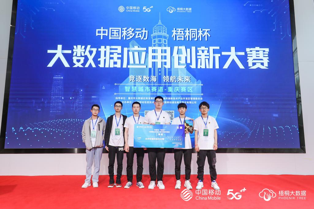 4月23日,“梧桐杯”中国移动大数据应用创新大赛——智慧城市赛道在重庆市科学城大创谷梦花园举行线下决赛,学校大数据分析实验室王小英老师指导的Maple战队(章皓禹、李晨潇、谭弄璋、张志伟、董坤凌、陈岩松)经过线下六个小时的激烈角逐,最终排名第二,荣获全国二等奖。