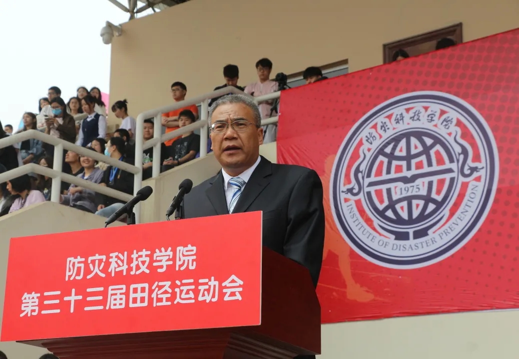 14日上午,学校第三十三届田径运动会开幕式启动,运动场上彩旗飘扬、掌声雷动,充满了欢歌笑语,涌动着青春的气息和激情。筹建工作组组长、华北科技学院党委书记卜昌森,副组长、防灾科技学院主持党委工作副书记石峰,副组长、华北科技学院校长张瑞新,副组长、防灾科技学院主持行政工作副校长任云生等校领导出席开幕式。石峰宣布运动会开幕,任云生致开幕辞。副校长洪利主持开幕式。