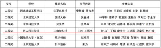 5月22日,第十届北京市大学生建筑结构设计竞赛暨第十四届全国大学生结构设计竞赛分区赛在北京建筑大学成功举办。近日,竞赛获奖名单在北京市教育委员会高等教育处网站公布,学校土木工程学院土木工程专业学生的参赛作品“三脚架构桥”荣获赛事二等奖。