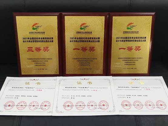 6月8日至10日,经济管理学院黄敏老师带领三支代表队赴天津参加2021年全国高校商业精英挑战大赛会计与商业管理案例竞赛,并斩获佳绩,其中苌欣、张钰淼、钟雨、吴沁凌四位同学“冬虫夏草队”获得全国一等奖;张笑瑜、史星源、孙娜、庞姝娆四位同学“核潜艇”队获得全国一等奖;曹胜美、汪婉玲、杨丽娟、张怡璠四位同学“金盏花”队全国三等奖。