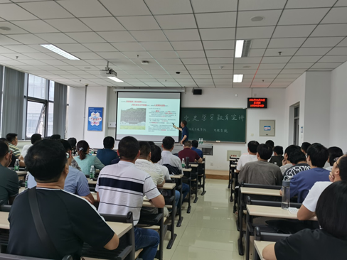6月24日下午,副校长洪利为电子科学与控制工程学院、地质工程学院教师党员和所联系班级190525班全体同学做了“弘扬古田会议精神 推进大学筹建”为题的党史学习教育宣讲报告。