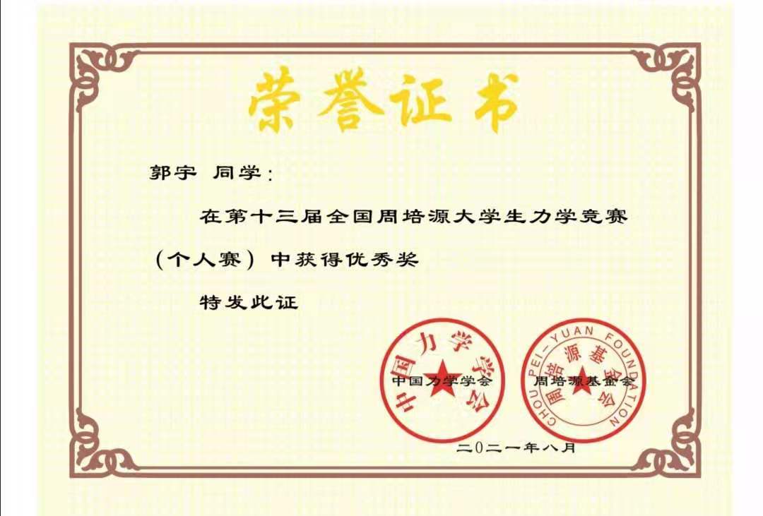 第十三届全国周培源大学生力学竞赛由教育部高等教育司委托中国力学学会和周培源基金会共同主办,于2021年5月23日在全国成功举办。全国400余所高校的3万余名青年学子一起参加了这项赛事。大赛主要考查学生在《理论力学》和《材料力学》课程方面的基础知识及综合运用能力。这两门课程是学校多个专业的基础课程,是培养工科大学生力学素养和创新思维的重要载体。作为承担基础力学课程的教学单位,土木工程学院力学课程组高度重视基础课程的教学质量,形成了一系列严格的教学规范和重视教学的优良传统。此次大赛获奖,进一步促进了土木工程学院相关力学基础课程教学改革与建设和工科创新型人才的培养。