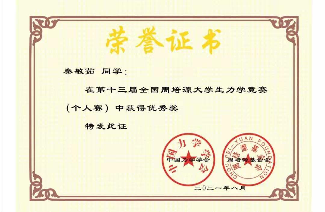 近日,第十三届全国周培源大学生力学竞赛全国奖获奖名单公布,防灾科技学院胡鼎浩同学喜获“第十三届全国周培源大学生力学竞赛”国家级三等奖;秦敏茹、郭宇、张迪和张智康等4位同学喜获国家级优秀奖,取得了防灾科技学院在这一力学国家顶级赛事中的突破。