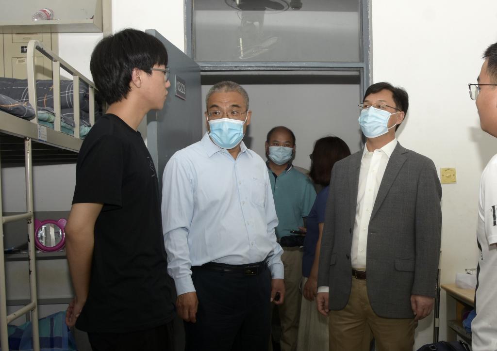 9月5日晚,主持学校党委工作副书记石峰、主持学校行政工作副校长任云生和副校长洪利,分别来到南北校区学生宿舍各看望慰问新生。