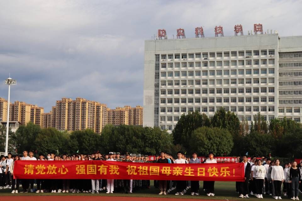 仪式正式开始前,所有人员佩戴团徽整齐站队,在第一排观看升旗的同学早早拉起“请党放心,强国有我,祝祖国母亲生日快乐”的横幅。上午八点整,主持人宣布“请党放心,强国有我”国庆升旗仪式正式开始。国旗护卫队以铿锵有力的步伐,走到升旗台前,随着一声“敬礼”,旗手们昂首挺胸向国旗致敬。升旗手高高扬起国旗,鲜艳的五星红旗迎风招展,在庄严的国歌声中缓缓升起。