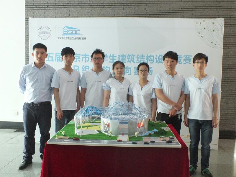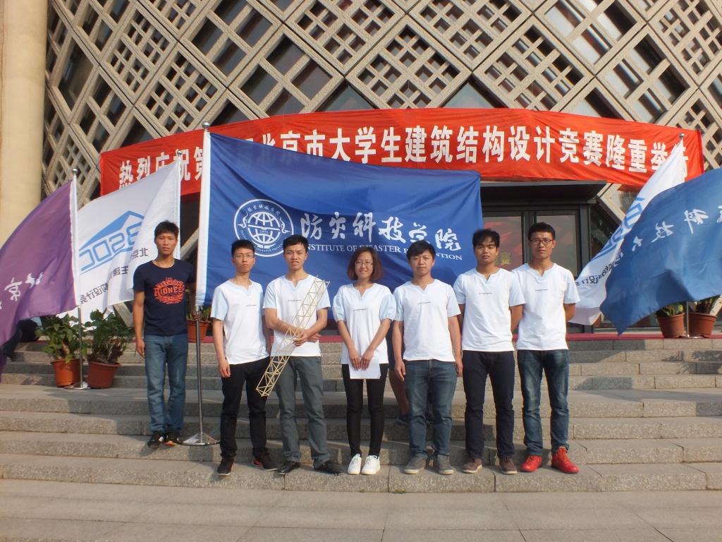 4月14日,防灾工程系团总支学生会组织了A组校内赛,共132名同学组成25支代表队参赛,经多级载荷试验,选出8支晋级队伍;4月28日进行A组复赛,选出4支候选队伍,并于5月6日进行了校内决赛,经过模型试验和选手答辩,最终优选出6名学生,重新组队代表我院参加北京市第五届建筑结构设计大赛。A组队员姓名为:邵定位(1450221班)、梁进宾(1450242班)、袁波(1450222班)、赵炀灿(1450222班)、姜凡(1450423班)、张东升(1550251班);队长为邵定位,指导老师为郭迅、万卫、张宇东、王丽,参赛作品名称“自强不息”。