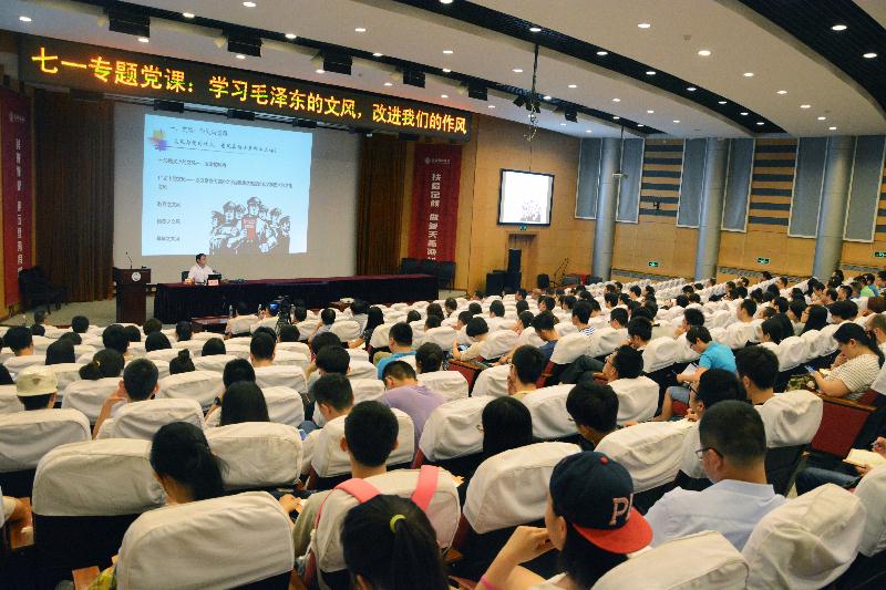 “七一”前夕,6月30日上午,按照学院“两学一做”学习教育工作安排,学院副院长迟宝明以“学习毛泽东的文风,改进我们的作风”为题讲党课,以这样的方式庆祝建党95周年。学院全体教职工党员、学生党员代表聆听了党课。