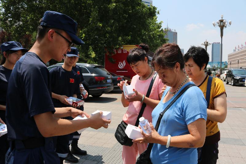 参观结束后,师生们在唐山抗震纪念碑广场前,通过发放宣传单、急救包和急救手册等方式向群众进行地震科普知识宣传,讲解地震紧急避险知识。师生专业细致的讲解得到群众的纷纷点赞。