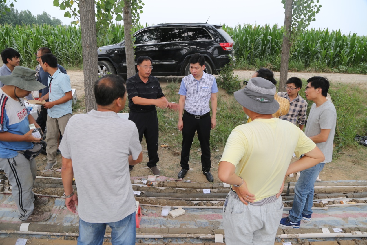 7月18日,院长薄景山教授与华北地质勘查局综合普查大队胡龙华队长、王国政总工等赴三河市齐心庄镇对“三河市活断层探测与地震危险性评价”项目(简称“三河市活断层探测”项目)钻孔探测工作进行现场指导。