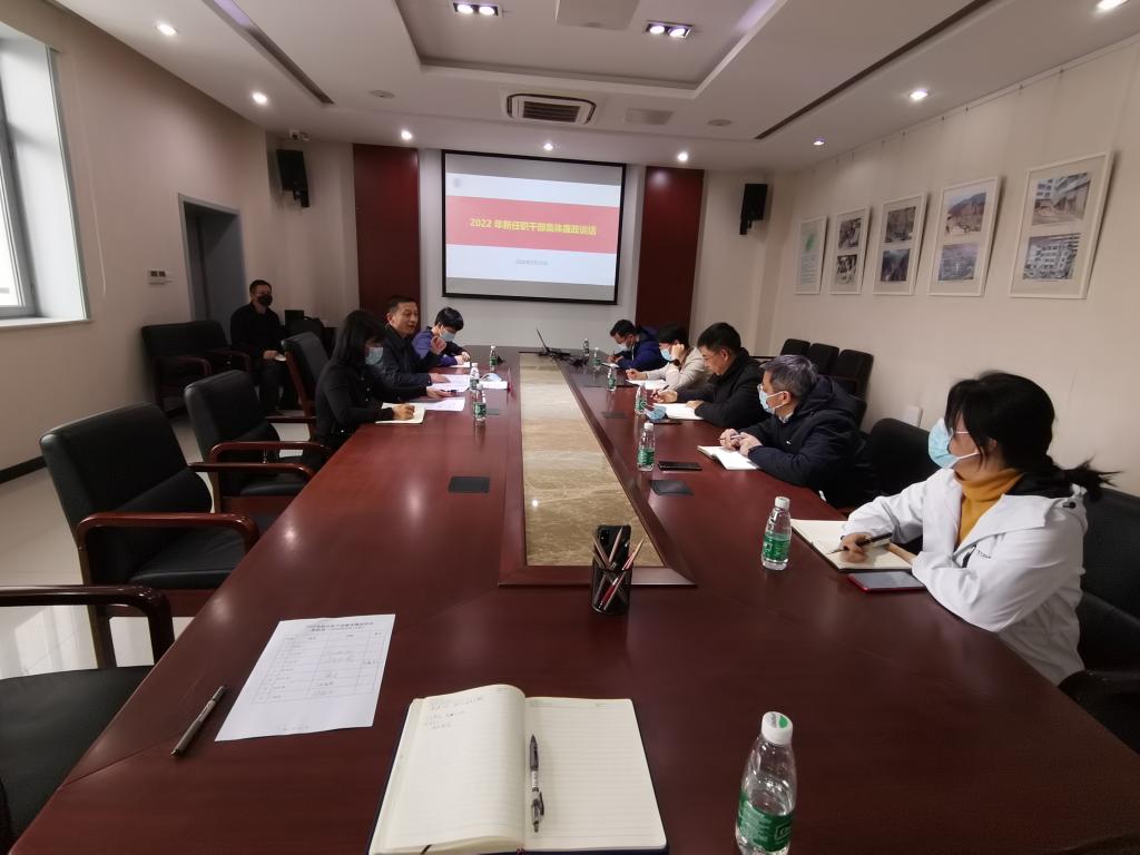 名新任职中层干部开展集体廉政谈话。纪检室主任王春红、组织部副部长赵会朋参加会议。