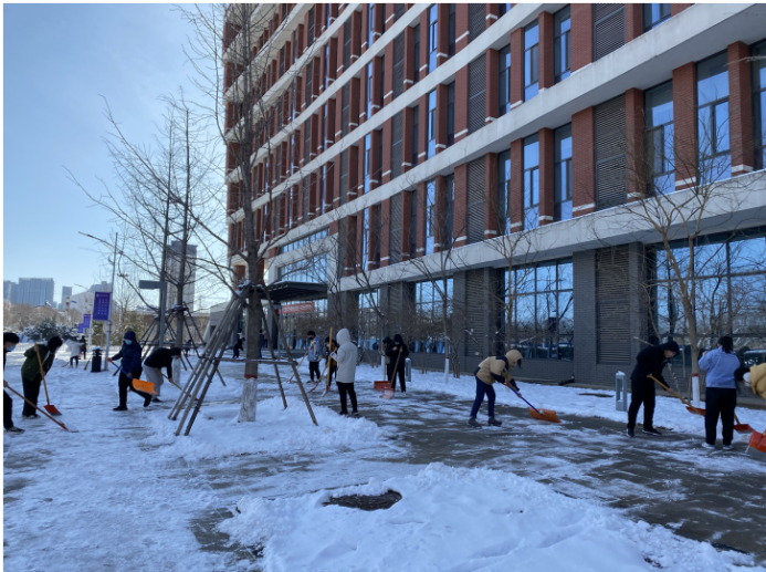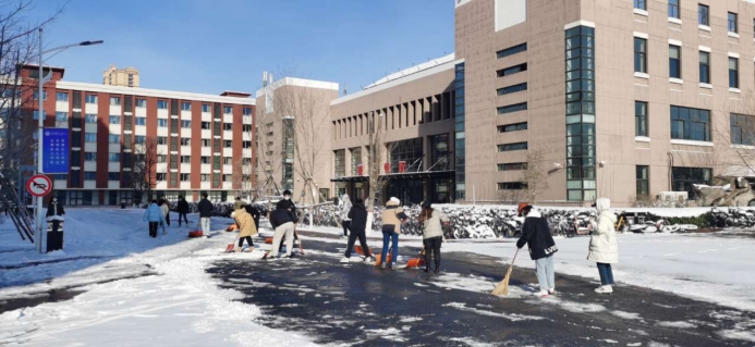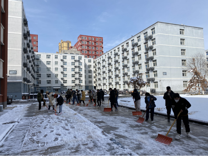 由于学校所在地仍然实行封控管理,校内后勤保障人力不足,为保障校内道路的畅通,方便师生出行,减少路面湿滑带来的安全隐患,因参考教师资格证而返校的同学们积极响应学校号召,主动投入到积雪清扫劳动之中,同学们不怕苦、不怕累、不怕冻,分工有序、配合默契。劳动现场,铁锹扫把与地面的摩擦声夹杂着说笑声回荡在校园上空,打破了往日的沉寂。