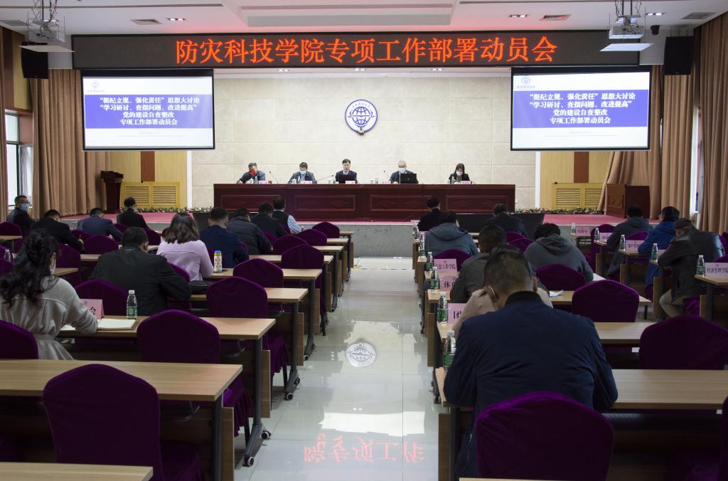 4月14日下午,学校召开“挺纪立规、强化责任”思想大讨论、“学习研讨、查摆问题、改进提高”专项工作和党的建设自查整改工作部署动员会,主持学校党委工作副书记石峰主持会议并作动员讲话,学校党委、行政负责同志任云生、陈光、梁瑞莲、郭迅、洪利、何本华线上线下出席会议,全体中层干部和党委工作部门有关人员参会。