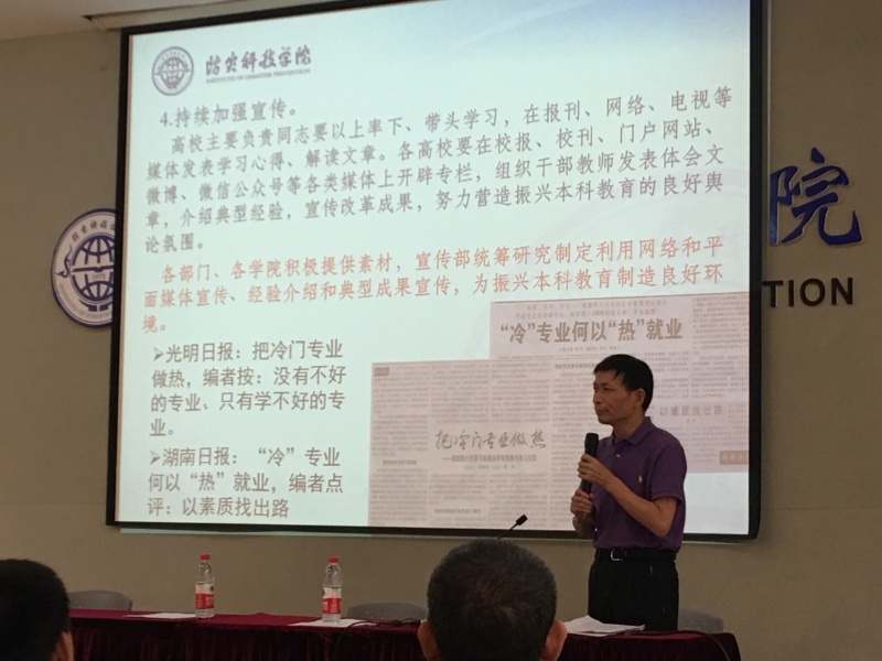 刘春平就落实教育部狠抓本科教育工作提出要求。一是组织开展教育思想大讨论,切实增强振兴本科的思想自觉和行动自觉;二是抓紧制定专项行动计划,系统规划振兴本科的建设路径和关键举措;三是全面整顿教育教学秩序,严格本科教育教学过程管理;四是紧紧抓住核心环节,加快构建振兴本科的长效机制和制度保障;五是大力推广典型经验,努力形成振兴本科的良好氛围和全局效应。