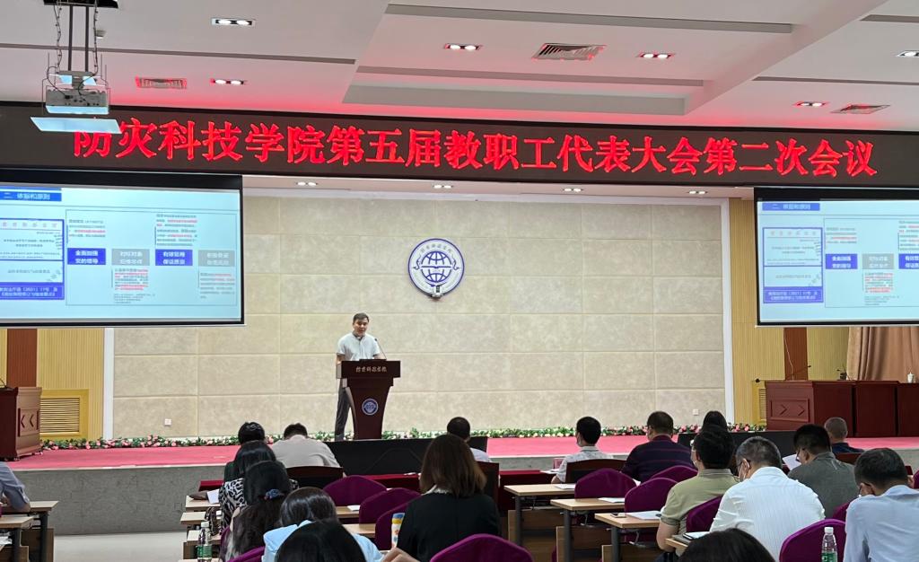 6月9日,学校召开第五届教职工代表大会第二次会议,听取并审议《防灾科技学院章程(修正案)》,听取《防灾科技学院绩效工资分配管理办法(修订)》。大会由学校工会副主席房卉主持。