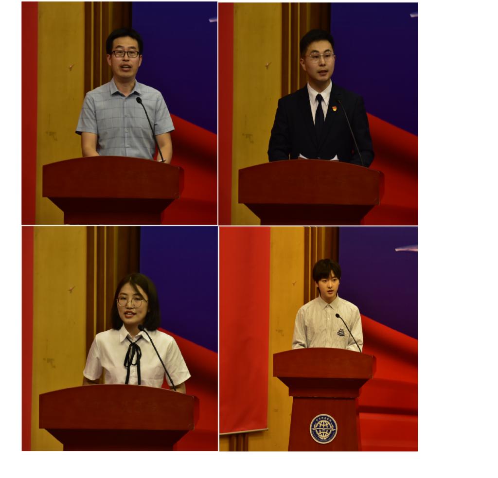 教师代表孙珍军和在校生代表陈柯均、本科毕业生代表庞天琦、硕士毕业生代表沈冠豪分别发言。