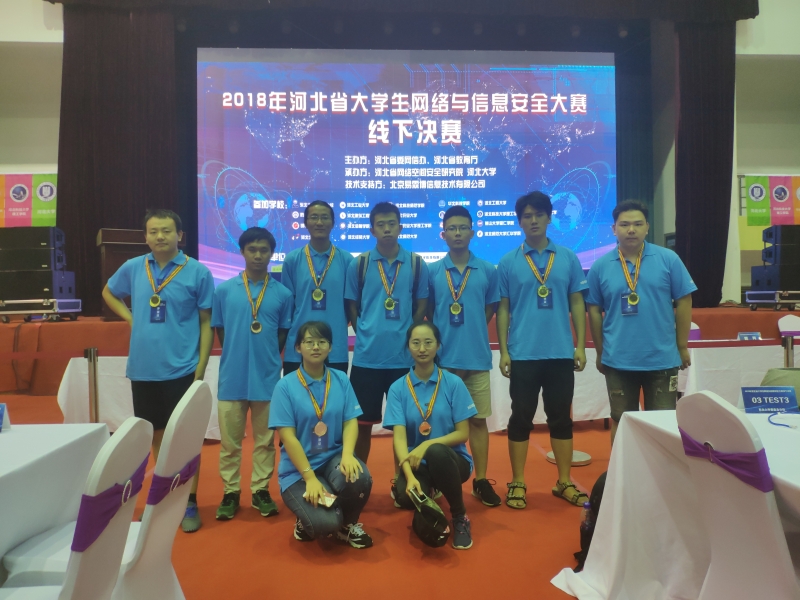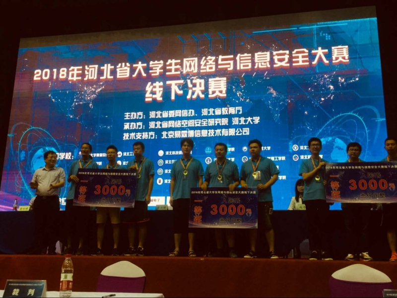 近日,2018年河北省大学生网络与信息安全大赛线下决赛在河北大学举行,我校三支队伍经过线下八个小时角逐,在全省24个队伍中,分别取得第一名和第二名的好成绩,Ginkgo战队和G1nk0战队荣获一等奖、525team战队荣获三等奖。