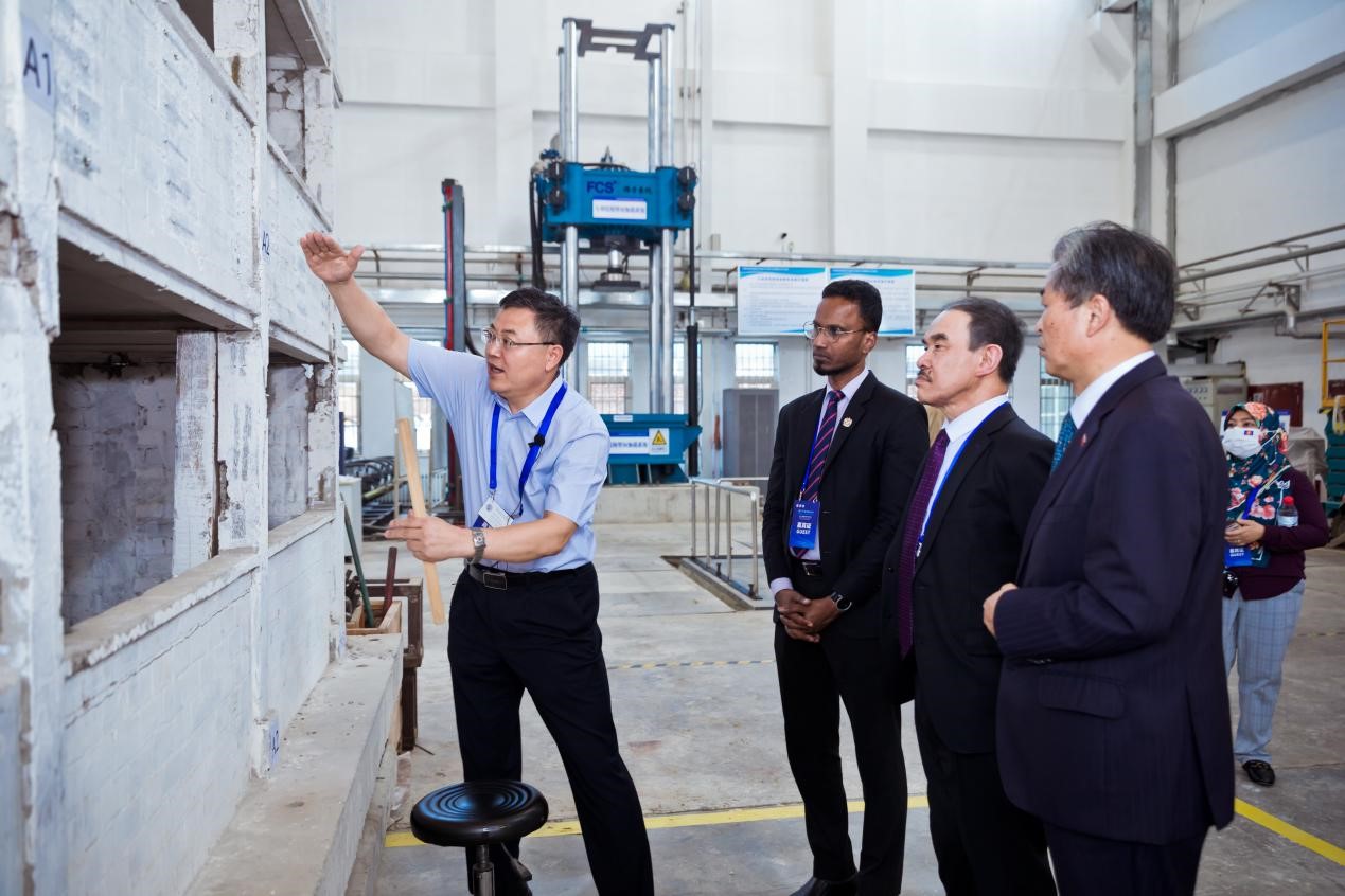 作为研讨会的第二个环节,与会嘉宾走访防灾科技学院,听取郭迅副校长等专家的学术汇报,体验地震振动,参观灾害模拟实验室,观摩隔震、砂土液化、滑坡、泥石流等实验,并与师生进行深入交流,探讨未来合作。文莱驻华大使拉赫玛尼高度评价学院为防震减灾所做的贡献,认为这是“挽救生命的壮举”。