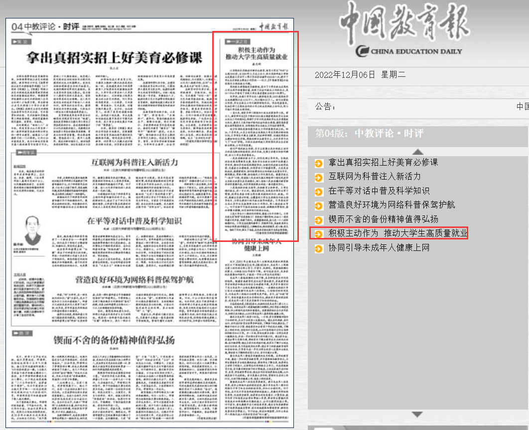 江苏高校扎实推进创新创业教育,培育大学生“双创”企业超5000家;自2020年11月成立至今,西北农林科技大学职业发展能力实训中心累计实训咨询辅导4000余人次,提升了毕业生求职就业帮扶工作实效……近日,《中国教育报》头版连续关注高校就业问题。 高校就业典型接连见诸报端,显示了大学生就业在高校工作全局中的重要位置,体现了社会对就业工作的关注,更让人们从中看到了实现大学生高质量就业的信心和勇气。 近年来,应届大学毕业生人数持续走高,2023届高校毕业生规模预计达1158万人,同比增加82万人。面对当前就业形势,毕业生就业工作无疑将持续承压。但在笔者看来,包括各部门各高校在内的工作主体应更积极主动作为,努力开拓大学生就业新局面。 一直以来,国家多部门持续加大就业政策指导力度。前不久,教育部印发《关于做好2023届全国普通高校毕业生就业创业工作的通知》,强调千方百计促进高校毕业生多渠道就业创业,要更大力度开拓市场化社会化就业渠道、建设高质量就业指导服务体系、加强高校毕业生就业工作组织领导等。 地方和高校是推动落实就业工作的重要实施主体。例如,十多年来,江苏主动实施全省高校大学生实践创新训练计划,引导学生开展自主探索,完成科学研究、创造发明或创业模拟和创业实践,厚植创新创业教育沃土,为许多学子放飞了“双创”梦想。而西北农林科技大学则强化毕业生求职就业帮扶,工作实效显著。 面对严峻的就业形势,多方主体要以更加积极主动作为的姿态做好战略谋划、战术实施,发挥主动意识和协同精神,助力大学生高质量就业。 一是政府搭好就业平台,切实发挥主导作用。各级政府在我国高等教育发展、高校毕业生就业过程中发挥着主导作用,要切实承担宏观调控责任,如制定促进就业经济政策、完善就业法律制度、加强劳动力市场建设等。尤其是省级政府,要提前谋划、协同统筹好创业和促就业政策与项目,敢闯敢试、常抓不懈,推动相关工作长期见效。要落实就业“一把手”工程,将省级人民政府及相关职能部门制定促进毕业生就业政策及其实施情况,纳入省级人民政府履行教育职责评价重要内容,切实将国家提出的这一要求落到实处。 二是高校抓好就业指导,承担教育主体职责。大学生顺利就业,非一日之功。摆在首位的,自然是加强专业学习管理,使学生具备与职业岗位要求相称的知识、技能。同时,要健全完善分阶段、全覆盖的大学生生涯规划与就业指导体系,为学生提供个性化就业指导和服务。引导高校毕业生从实际出发选择职业和工作岗位,深入推进就业育人。对于求职中可能存在的就业歧视、招聘欺诈等陷阱,要加强警示提醒,切实维护他们的就业权益。 三是大学生个人做好内功修炼,靠能力打开求职门。大学生就业是“拼爹”还是拼能力?受极端个案的影响,社会上一度流传着不同声音,混淆了视听。毋庸置疑的是,能力是一个人的职场通行证。大学生在校期间要学习、实践两手抓,具备较高专业和综合素养;既仰望星空,又脚踏实地,做到有眼界、有心胸、有见地。练好了内功,做足了准备,在未来求职过程中自然会受青睐。 (作者系防灾科技学院副教授) |