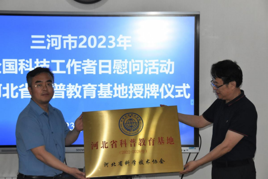 石中华代表三河市科学技术协会,向学校辛勤工作、勇于创新的科技工作者们献上诚挚的节日祝福。在慰问活动之际,石中华代表廊坊市科学技术协会祝贺沈军教授荣获2023年廊坊市“最美科技工作者”称号,并代表河北省科学技术协会为我校“地震地质灾害监测与防控科普教育基地”进行授牌,学校充分发挥科普基础设施的功能和优势,被河北省科协命名为“2022年度河北省科普教育基地”。(供稿:科研处;编辑:朱宏)