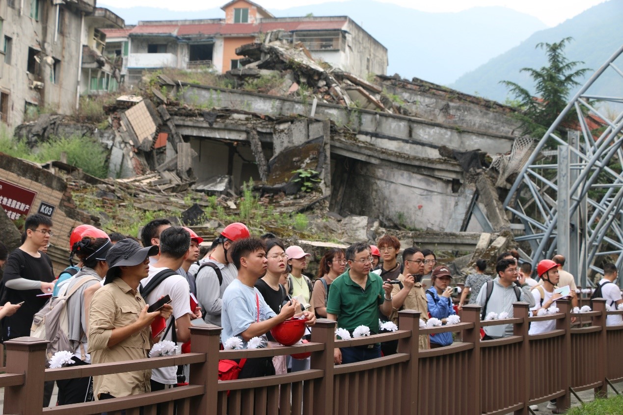 7月1日上午,联合党委常委、防灾科技学院副校长郭迅教授带队参观北川老、新县城遗址,讲解了地震地质灾害成因及震害,根据各类建筑物受损情况讲解“散”“脆”“偏”“单”评估法,提出在实践中要应用“整而不散”“延而不脆”“匀而不偏”“冗而不单”的结构抗震理念。
