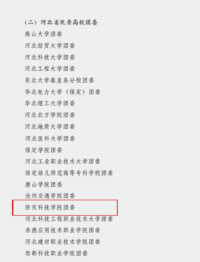 近日,共青团河北省委办公室公布了2023年度全省共青团述职考核结果,我校与燕山大学、河北经贸大学、河北科技大学等20所高校团委被授予2023年度“河北省优秀高校团委”荣誉称号。