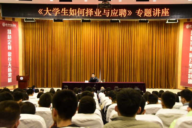 10月26日下午,我校“就业服务活动月” 开幕式在图书馆报告厅举行。校长姚运生做《大学生如何择业与应聘》专题讲座。招生就业处处长张振主持讲座。