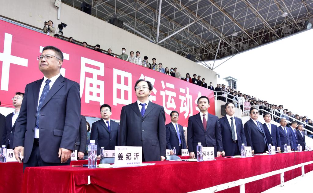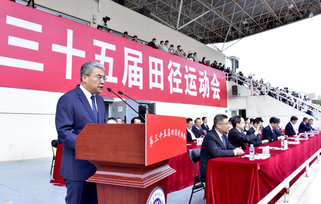 激扬赛场展英姿,青春洋溢正当时。4月28日上午,第三十五届学校春季田径运动会在南校区体育场隆重开幕。校领导卜昌森、石峰、赵峰华、任云生等出席开幕式,联合党委书记卜昌森宣布运动会开幕,联合党委副书记、主持行政工作副校长任云生致开幕辞,联合党委常委、副校长洪利主持开幕式。