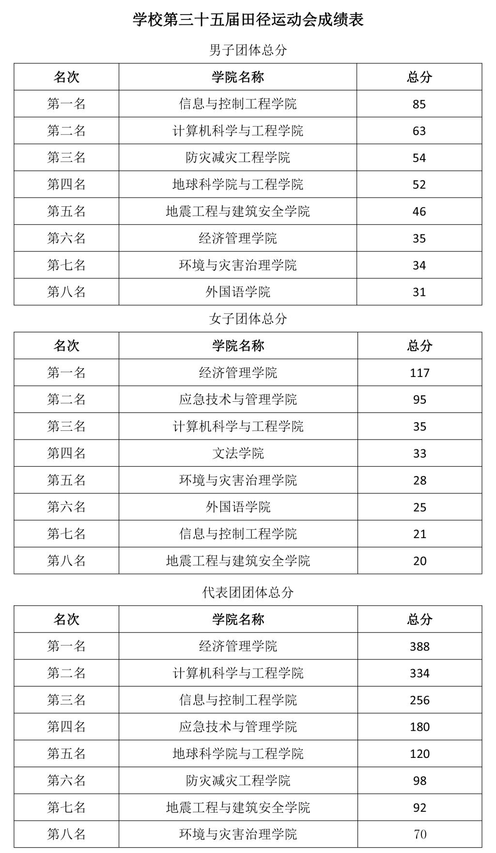 4月29日下午,运动会圆满落幕,洪利致闭幕词。共有11支代表队6000余人次参加了35个运动项目的比赛。经过紧张而激烈的角逐,评选出男子、女子团体总分前三名、代表队团体总分奖前三名,会徽设计奖1个、精神文明奖5个。全校学子发扬体育竞技精神,在运动中锤炼意志,在比赛中磨砺品格,以更加饱满的热情、更加坚定的信心迎接挑战、创造辉煌,共同谱写学校升级发展新篇章,充分展现了团结协作、公平竞赛、斗志昂扬、奋勇争先的精神风貌。