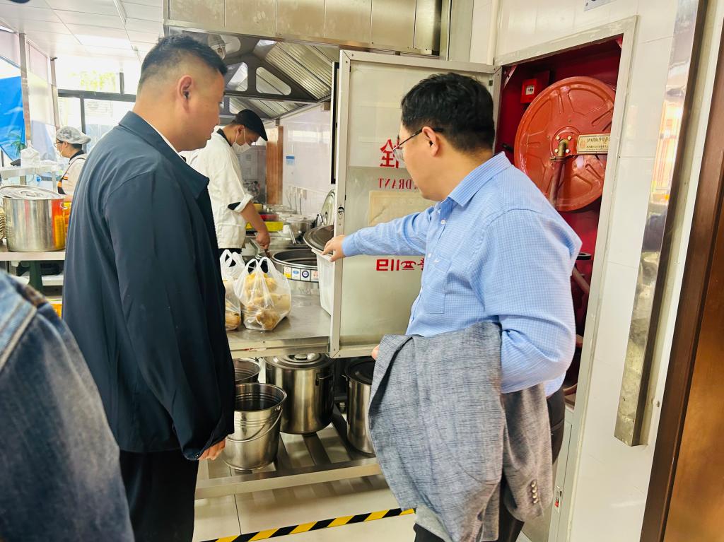 检查人员查看餐厅消火栓