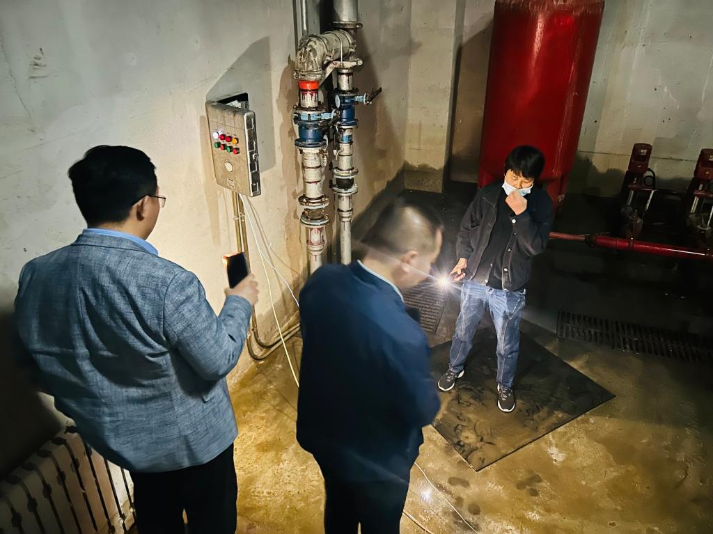 检查人员查看消防泵房