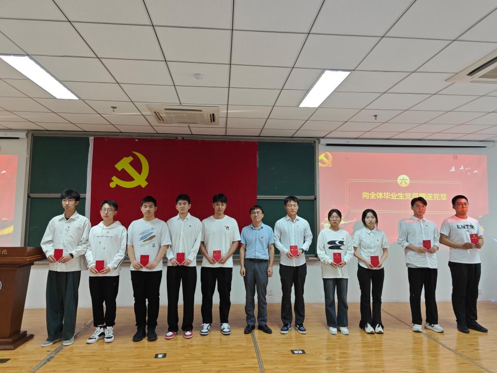 电控学院党总支书记贾甚杰向毕业生党员赠送党章