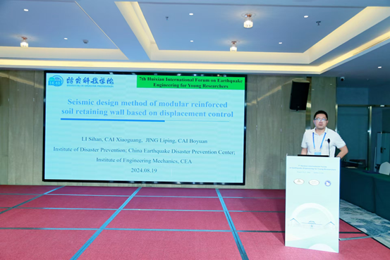 学校地质工程学院李思汉博士参加了本次论坛,并作题为《Seismic design method of modular reinforced soil retaining wall based on displacement control》的学术报告,简要介绍了加筋土挡墙位移设计的研究背景,系统总结了变形指数和位移计算方法的研究过程,提出了基于位移控制的模块式加筋土挡墙抗震设计方法。通过本次学术交流,扩大了学校的学术影响,提升了学校的知名度。