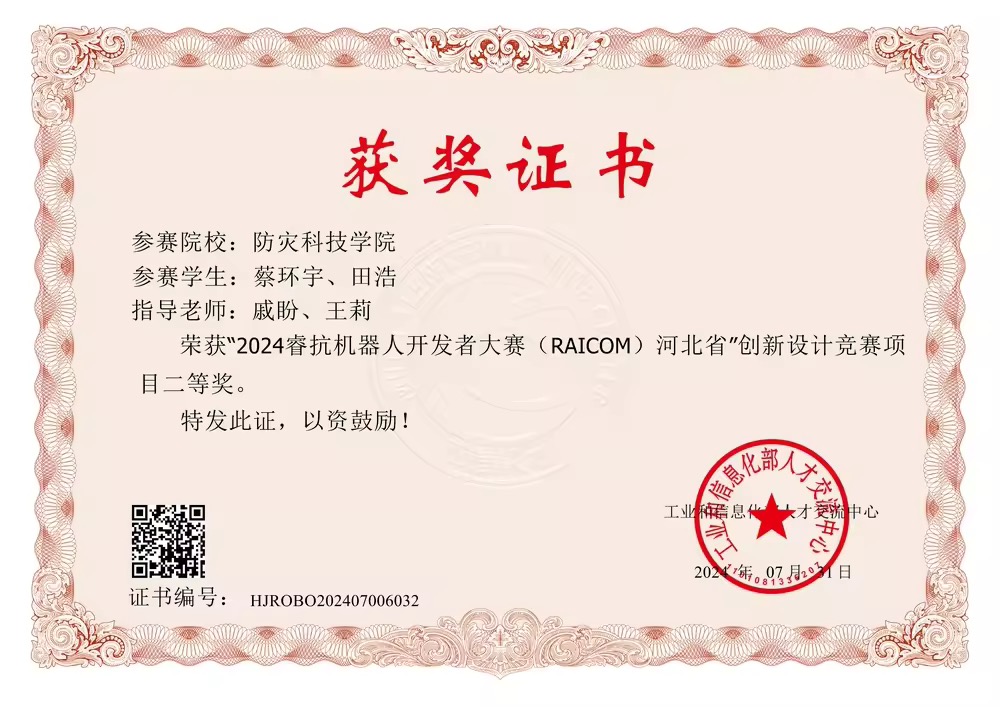 近日,2024睿抗机器人开发者大赛(RAICOM)全国总决赛在浙江杭州圆满举办。在电子科学与控制工程学院蔡建羡、戚盼、王莉三位老师的指导下,由蔡环宇、田浩同学组成的队伍在创新设计竞赛项目中荣获二等奖,由袁芳、孟庆欣同学组成的队伍在智能系统竞赛项目中荣获三等奖。