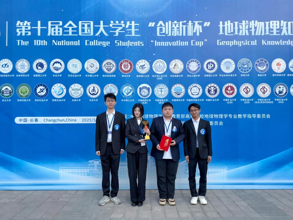 “创新杯”全国大学生地球物理知识竞赛由中国地球物理学会发起,与教育部高等学校地球物理类教学指导委员会共同主办,吉林大学承办,共有来自全国各地的46所高校108支队伍参加。学校顾观文教授领队,谭萍、罗腾和房春慧作为指导老师,勘查技术与工程和地球物理学专业组成的“重磁电勘探”“地震勘探”和“固体地球物理”三个团队参赛。比赛过程中,学生密切配合、稳扎稳打,充分展示了我校学生良好的创新精神和团队协作精神,同时开拓了学生的视野,提升了学生的专业综合能力。