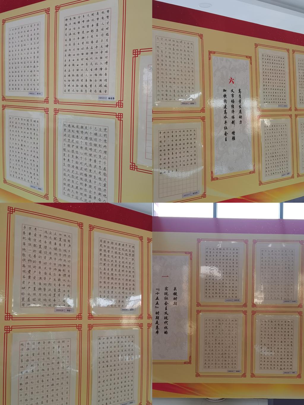 为保障活动质量,本次书画展组建学生评审组与教师评审组双重把关,共征集硬笔书法作品1380幅、软笔书法及绘画作品20余幅,最终遴选出114名创作者的127幅硬笔、21幅软笔、7幅绘画作品参展。其中,硬笔作品创作者先集中学习党的二十届四中全会视频资料,再经专业书法指导,分工抄写《中共中央关于制定国民经济和社会发展第十五个五年规划的建议》核心内容;软笔作品紧扣全会精神创作,绘画作品则围绕未来发展蓝图自主构思,以严谨流程实现了思想性与艺术性的统一。