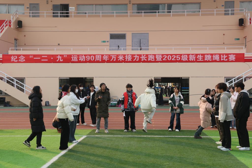 12月10日下午,学校在西体育场举办纪念“一二·九”运动90周年万米接力和新生班跳绳比赛。各学院党委(党总支)书记、学生科长、学办主任、辅导员及2000余名学生代表共同参加了本次活动。