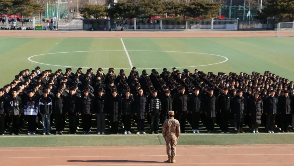“厚德启智,扶危安国”随着嘹亮的口号声响彻校园。12月24日中午,应急技术与管理学院25级全体学生准军事化训练汇演在运动场举行。