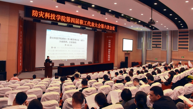 5月3日,学院召开第四届教职工代表大会第六次会议,专题听取《防灾科技学院绩效考核管理办法(试行)》《防灾科技学院绩效工资分配管理办法(试行)》征求意见稿。大会由学院工会副主席房卉主持。