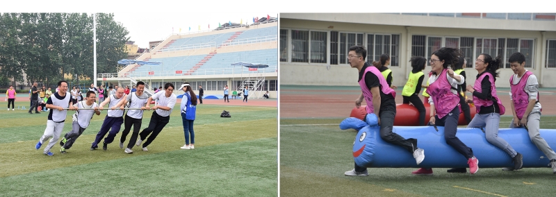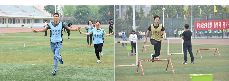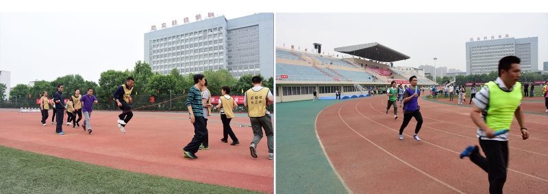 本届教职工运动会是以团体项目为主,如铁人三项、跳绳接力、绑腿跑、10*400米接力等。最精彩的项目当属10*400米接力,共有8个分工会参加,各分工会都选出最优秀的短跑选手,无论是男运动员还是女运动员都拼尽全力、奋勇争先,赛场上加油声、呐喊声此起彼伏。