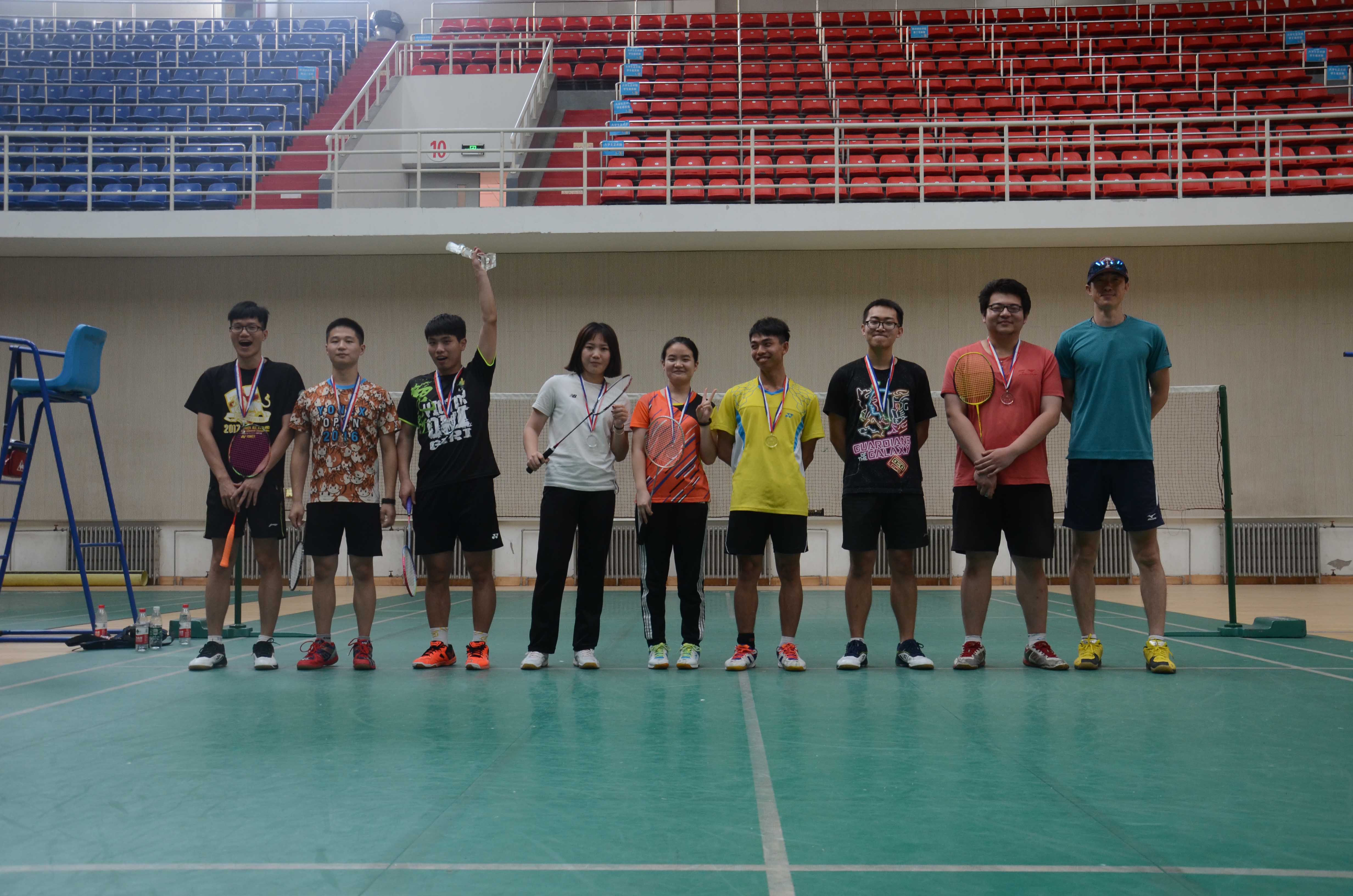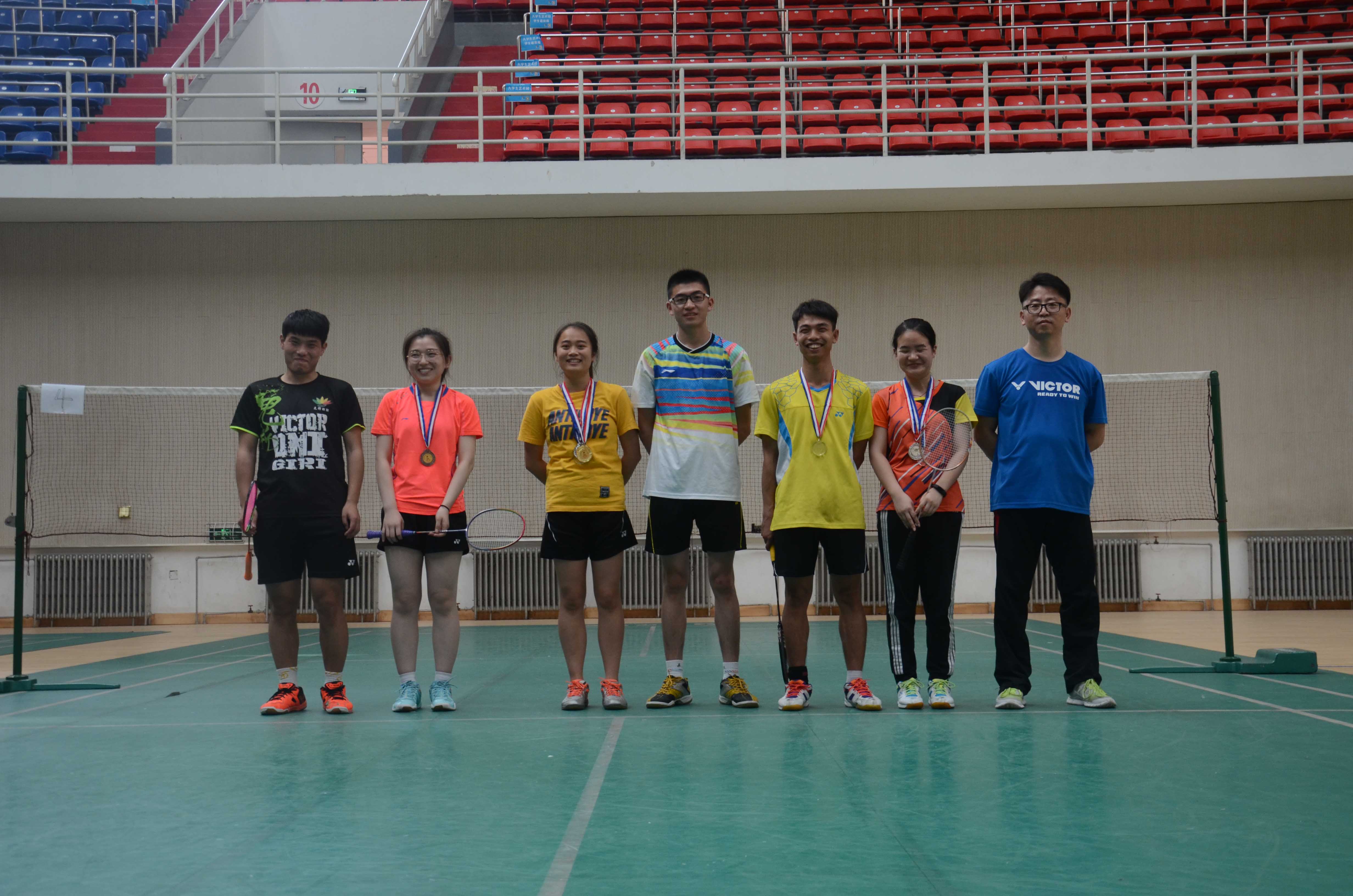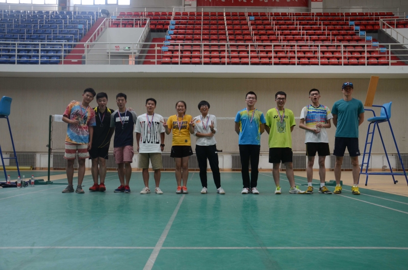 主持人致开场辞后,裁判员代表、运动员代表依次宣誓,本届联赛开幕。各校运动员依次进场检录,按比赛分组开始比赛。比赛分别设置男双、女双、混双、男单、女单五个项目,以小组赛的形式展开。各位选手在比赛中赛出了风格,赛出了水平,赢得了在场观众的阵阵喝彩。比赛结束后,进行了颁奖仪式,各校代表队合影留念。(撰稿:夏启 温再生摄影:夏启)