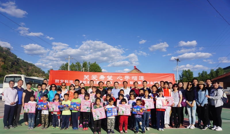 向杨树底下村的少年儿童赠送“六一”节礼物并合影留念