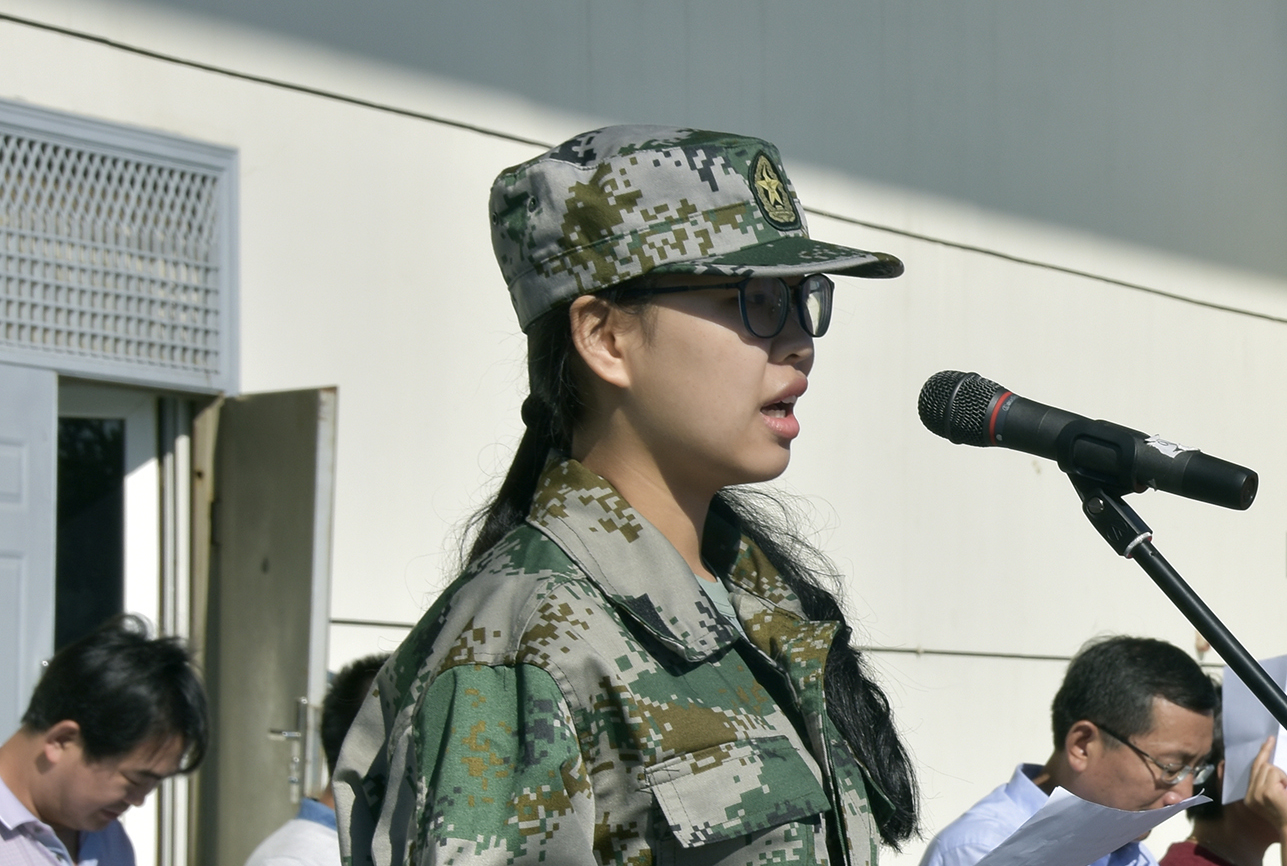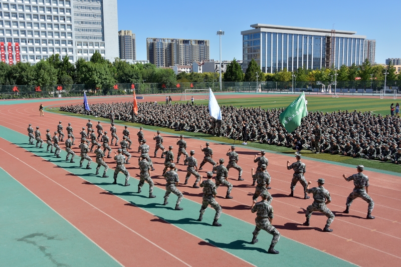 典礼结束后举行了军训动员大会。学院军训工作领导小组副组长、学生工作处处长侯逾昆做军训动员讲话。副旅长景涛代表承训教官讲话,表示一定高标准、高质量完成本次军训任务。